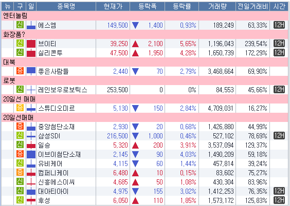 어느정도 반등은 해줬지만 영 힘아리가 없다ㅜㅜ 거래량도 높진 않고.. 이번에는 부진했던 조선 원자력 등이 올라왔고 화장품도 꽤나 올랐다. 지금은 너무 와리가리가 많은 장이라서 어떻게 잘 대응하는 수 밖에는 없는거 같다. 근데 그냥 미장하는게 나을거 같다.