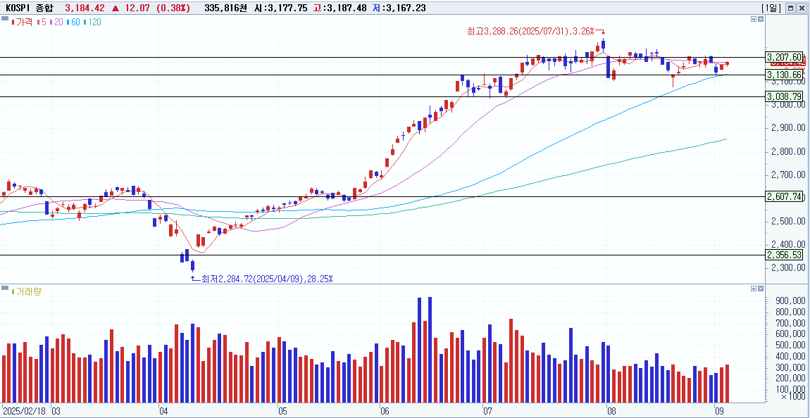 - 코스피: 3,184.42, +0.38%로 마감. 개인·기관 순매수, 외국인 소폭 순매도(요약)