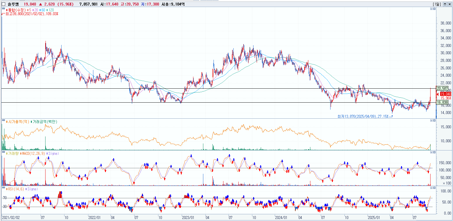- 이벤트성 급등 후 변동성 확대 구간이라 추격 보단 눌림 대기 유리. 전일 저가·5일선 부근만 분할 접근, 고가(20.7k) 재돌파는 거래 재증가 확인 후.