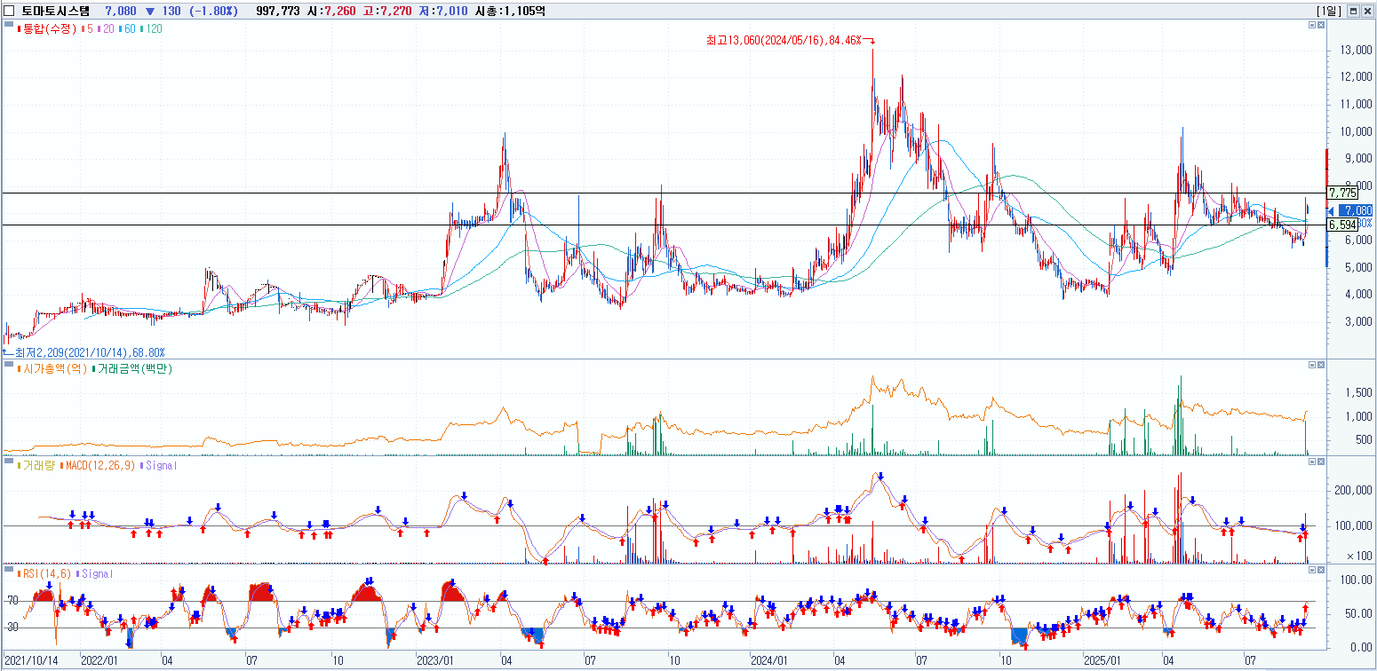 퓨리오사AI 뭐시기 때문에 정책주로 많이 올랐었던 친구이고 또 미국 현지법인(사이버엠디케어)의 ‘메디케어 헬스플랜 핵심 보험 시스템’ 개발 계약 및 프로젝트 착수 소식 덕분에 최근에 올랐다. 나름 호재도 있고 차트도 그리 높은 위치가 아닌거 처럼 보이니까 박스권 하단에서 한번 노려보자.
